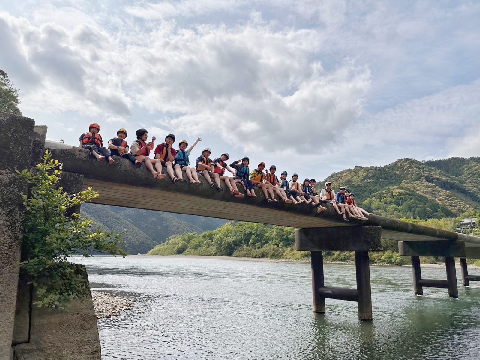 高知の清流と風、そして仲間と。POOLO LIFE 6期のメンバーとともに訪れた旅先で、沈下橋に並んで座った思い出の1枚