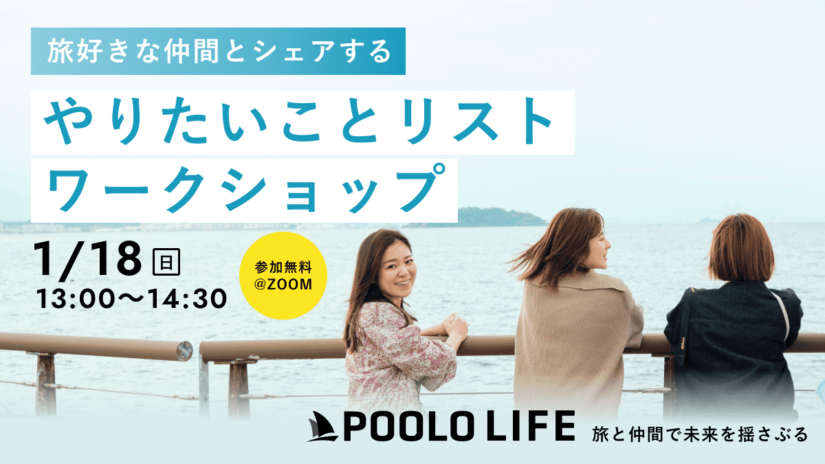 そこで今回は、気軽に参加しやすい形で【旅のスタイルとキャリア観】にフォーカスしたイベントを開催します。この90分が、自分のやりたいことや価値観を見つめ直すきっかけになり、そしてPOOLOの空気感を感じてもらえる時間になれば嬉しいです。