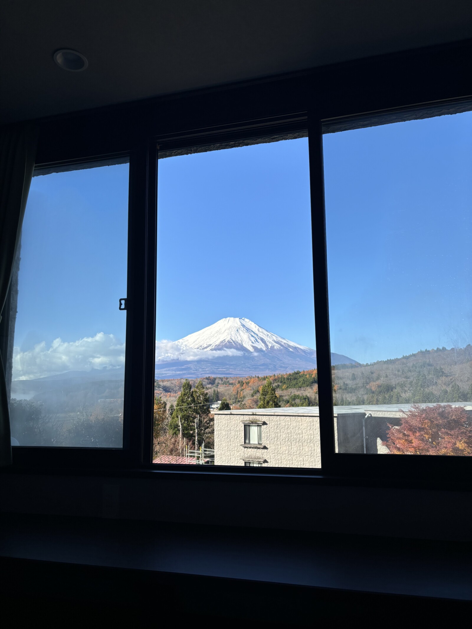 お天気にも恵まれ、あえて少し離れたところから見る富士山の美しさ、壮大さ、みたいなものをすごく感じる景色でした。そして何より、起きてすぐこの景色を見られることが最高。お値段も良心的なので、学生さんにもおすすめの宿です。