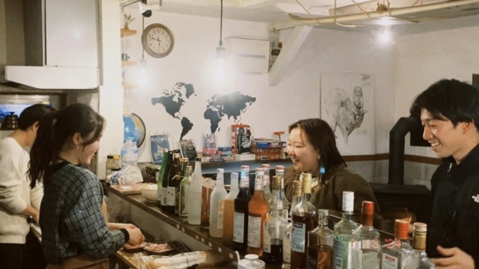築60年の古民家を改装して作られた2階建ての建物。1階が宿の受付とカフェバー、そして2階が宿になっている。私はゲストハウスに併設された1階のバーで働いていた。ここではカウンター越しに、初めましての旅人や顔なじみの近所の仲間たちと、数えきれない時間を共有した。
