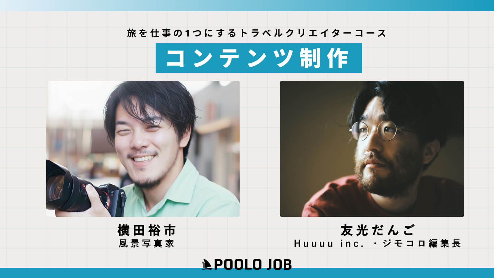 今回は、現在募集中のPOOLO JOB7期の「トラベルクリエイター講師」と「プロ編集者」の豪華ゲストをご紹介いたします!