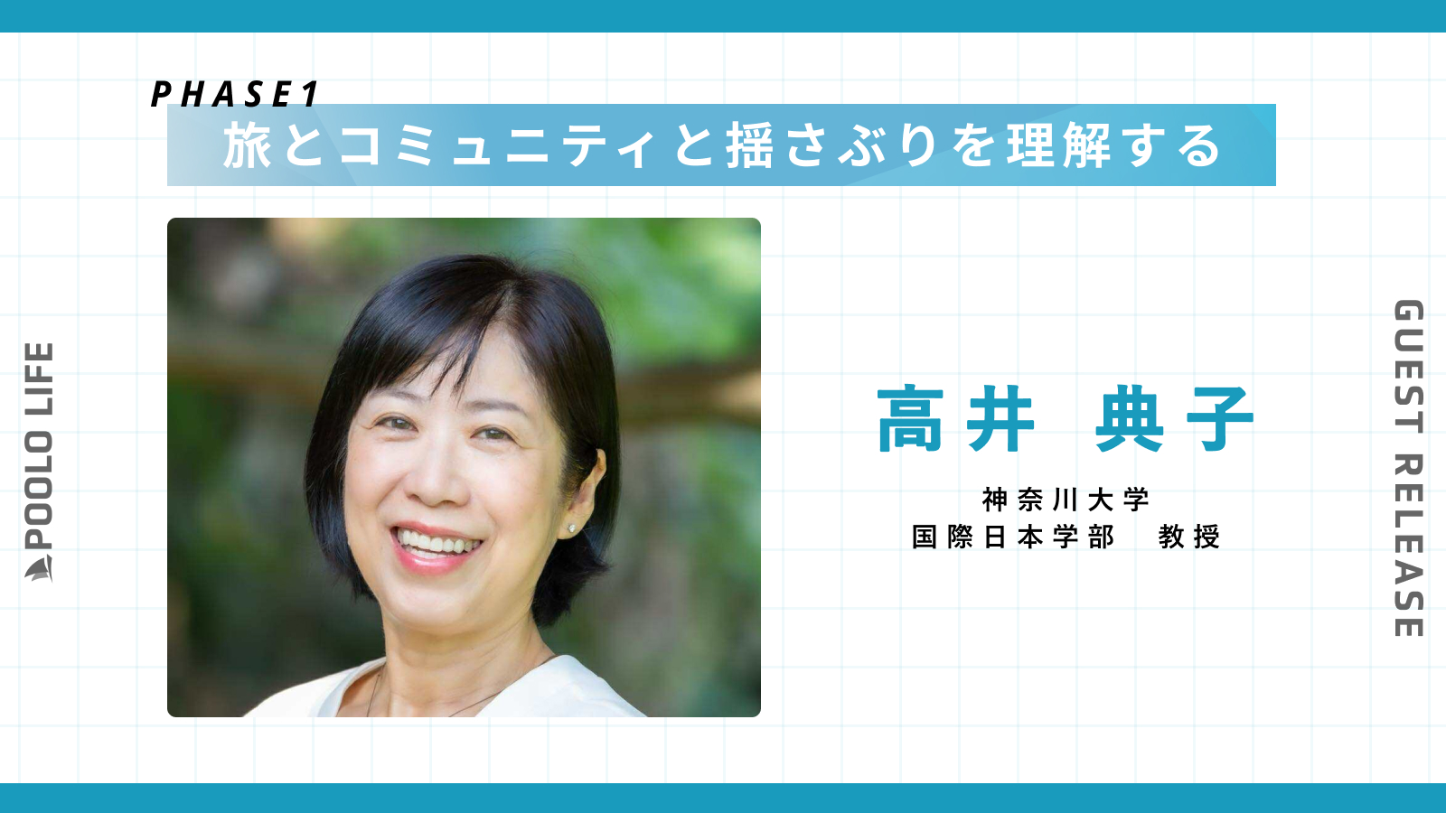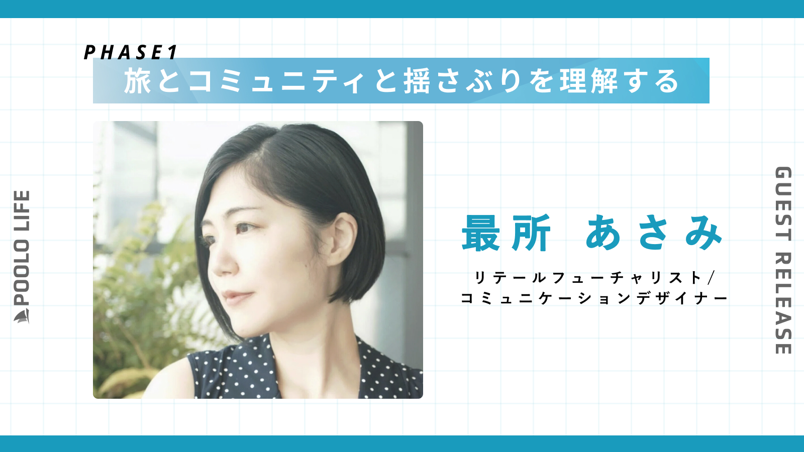 1ヵ月目のPHASE1のテーマは、「旅と揺さぶりを理解し、自分を深める」。ゲストは、髙井典子さん、最所あさみさん、佐野貴さん、永井玲衣さんです。