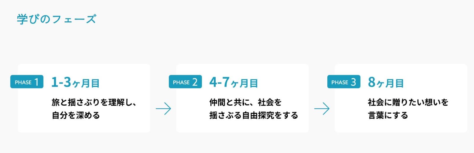 4-7ヵ月目のPHASE2のテーマは、「仲間と共に、社会を揺さぶる自由探求をする」。最も期間が長いフェーズとなります。