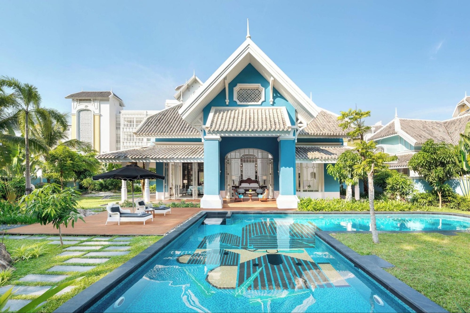 ベトナム・フーコックのエメラルドグリーンの海岸に位置するラグジュアリーリゾート「JWマリオット フーコック エメラルド ベイ リゾート&スパ」。建築好き必見、このホテルは建築家ビル・ベンスリーがデザインしたもの。