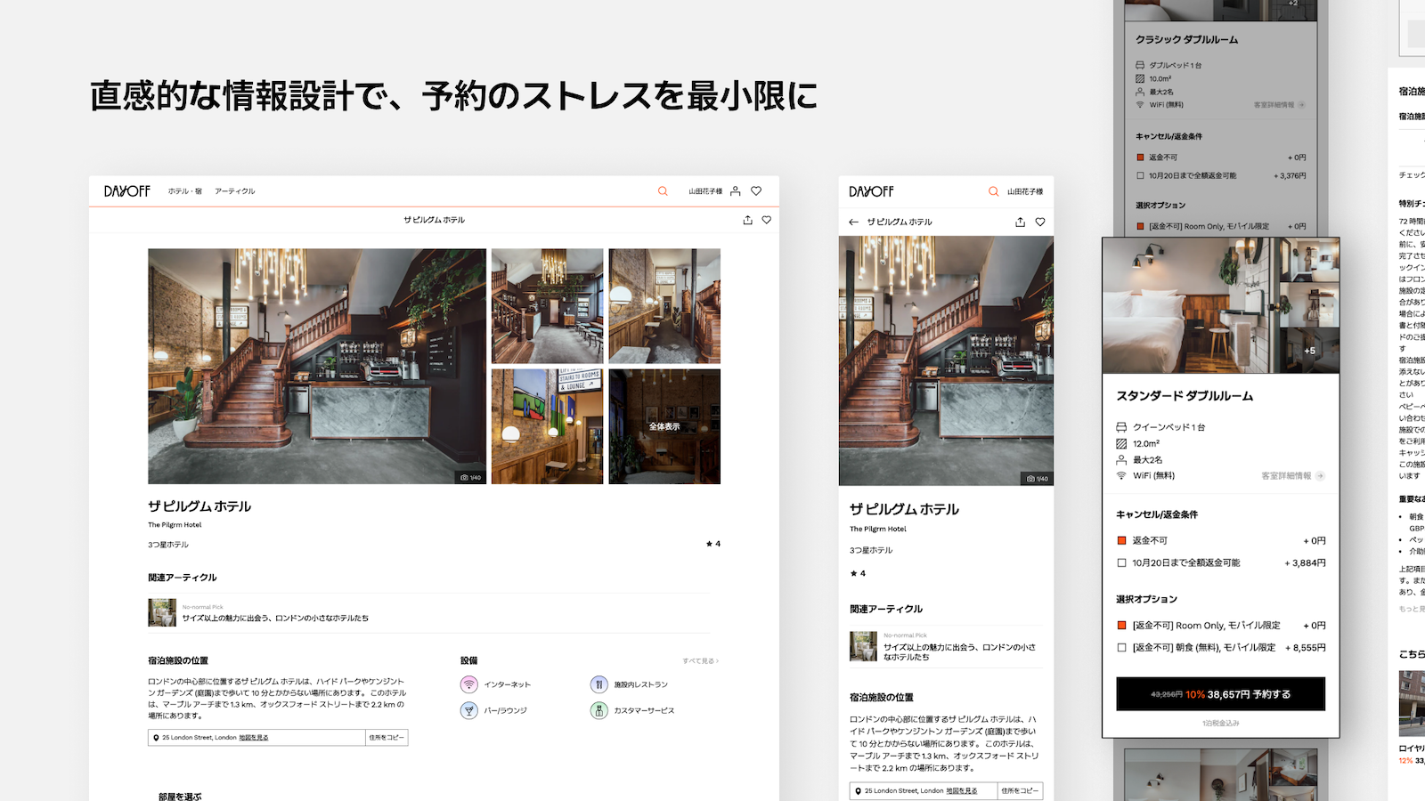 予約に必要な主要情報(例:オプション、価格、キャンセルポリシーなど)が一目で比較可能なデザインのため、操作に迷うことなくスムーズに予約を進めることができます。