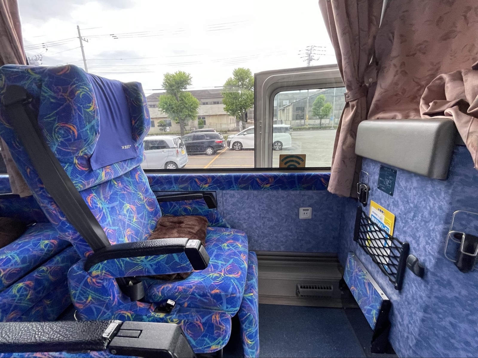 今回の旅で利用する四国-富山の高速夜行バスは、隣の人を気にせずリラックスできる独立3列ラグジュアリーシート「プレミアム3」。 全席に仕切りカーテンが設置されており、閉めればそこは自分だけのプライベート空間に。パーソナルスペースを確保することができ、お隣の席を気にすることなく寝ることができます。