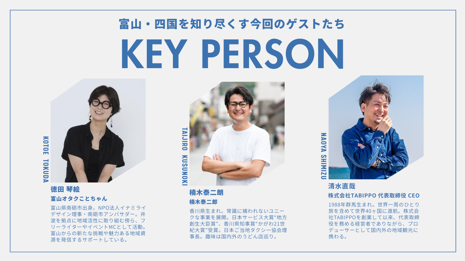今回のモニターツアーでは富山・四国のそれぞれの地域のスペシャリストとも会うことができます!