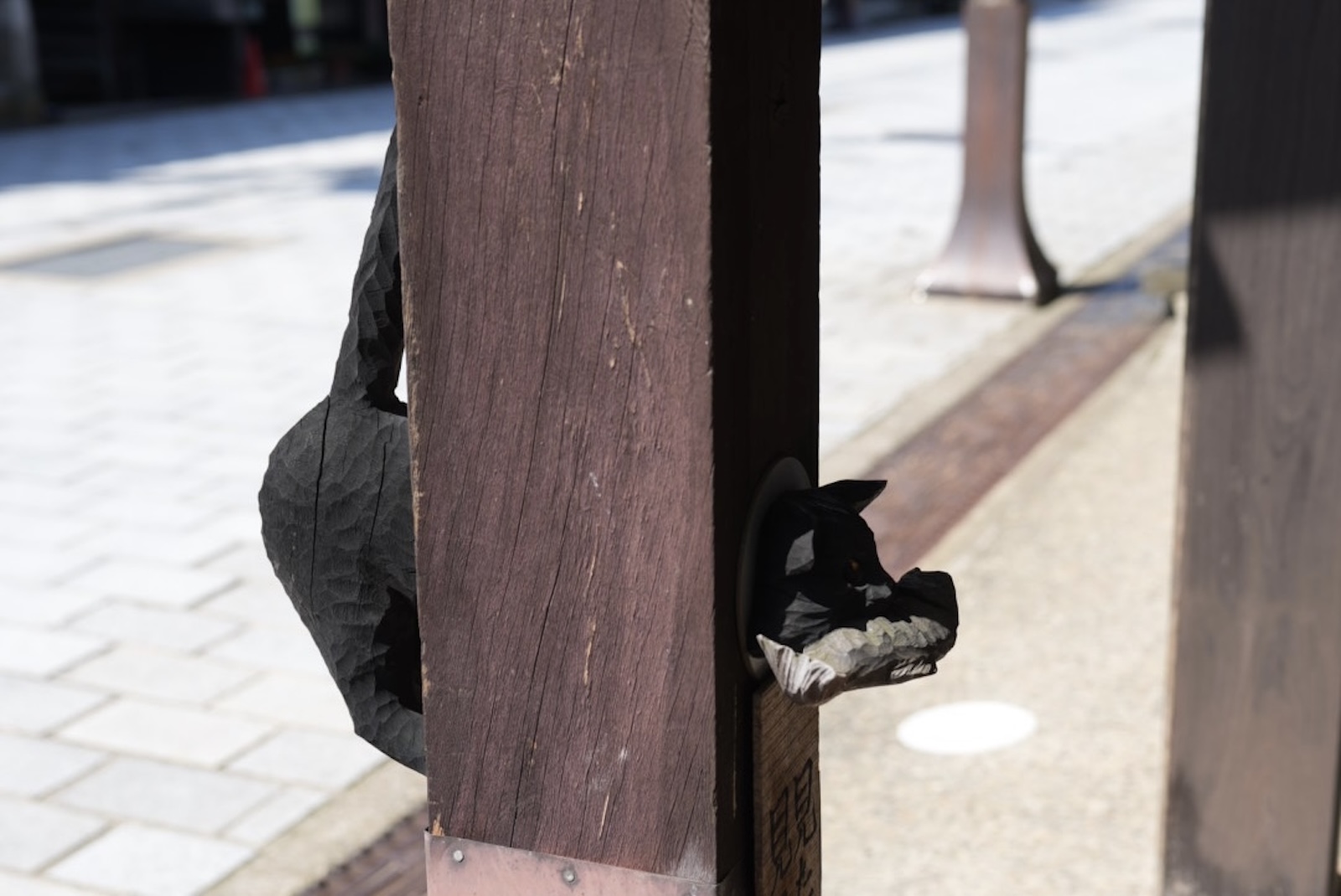 八日通りには至る所に木彫りの猫が。「南砺(なんと)とにゃんと」をかけているのだとか