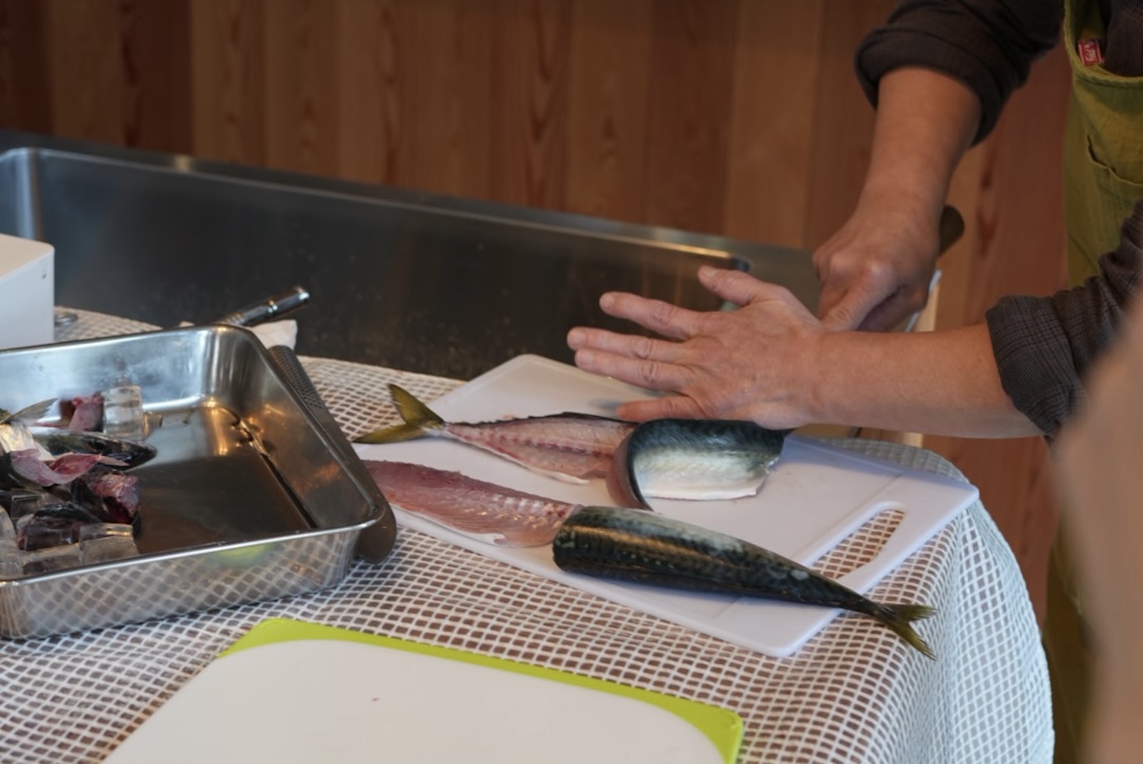 講師の「食べごとやナトゥーラ」さんに丁寧に教わりながら、実際に自分の手で魚を捌きます。