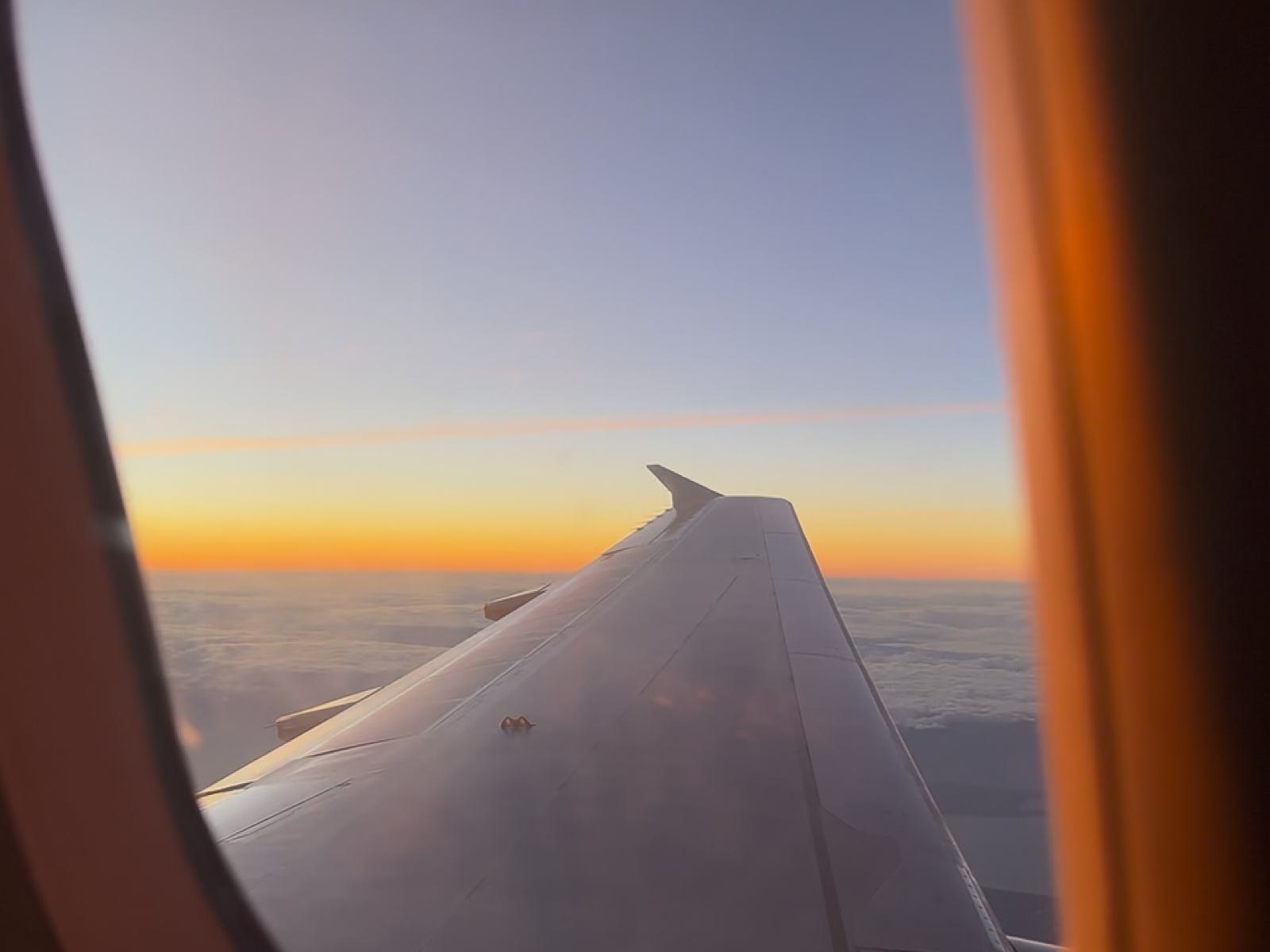 朝6時のフライトだったのでちょうど朝日も見れてとても綺麗でした。偶然座席が両隣いなくて3席広々と使えました。課金せずに3席使える時ってとても得した気分になりますよね!