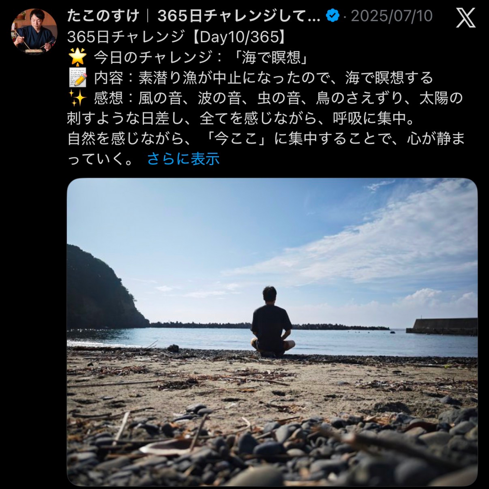 そして、その探求テーマを深掘りするために「365日チャレンジ」を始めました。これは、毎日ひとつずつのチャレンジや気づきをXで発信し続けるというものです。