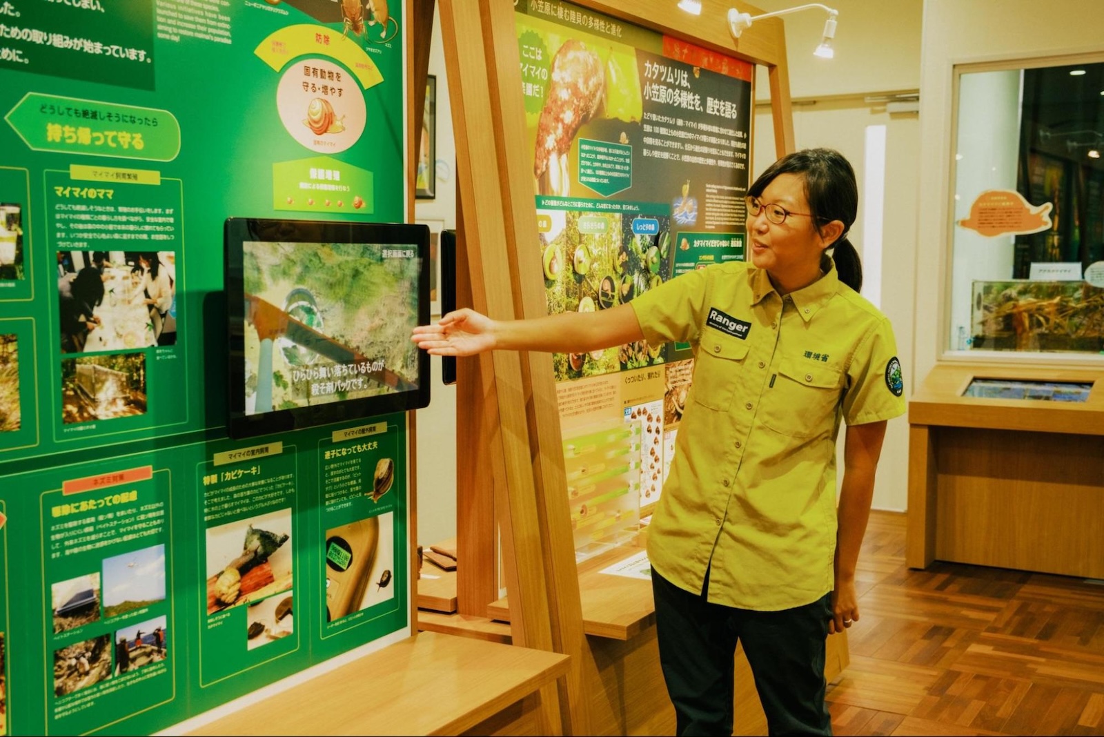 ここでは、展示や映像を通じて自然や生態系について詳しく学ぶことができます。今回は実際に保護活動に従事する方々(通称:マイマイ母さん)に話を伺ってきました。