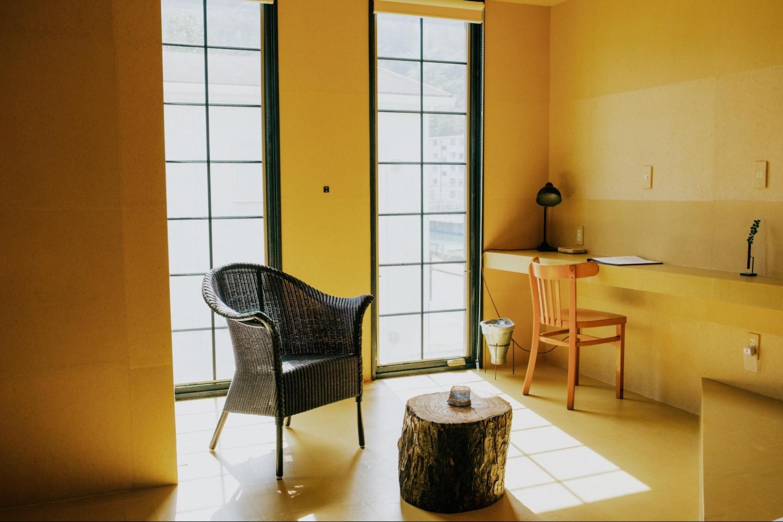 今回泊まったのは『Hou room』。“Hou”は“包”を意味しており、部屋は和紙作家・ハタノワタルさんの手隙和紙で全面が包まれています。朝には優しい光が差し、和紙の風合いを感じながら、過ごすことができました。