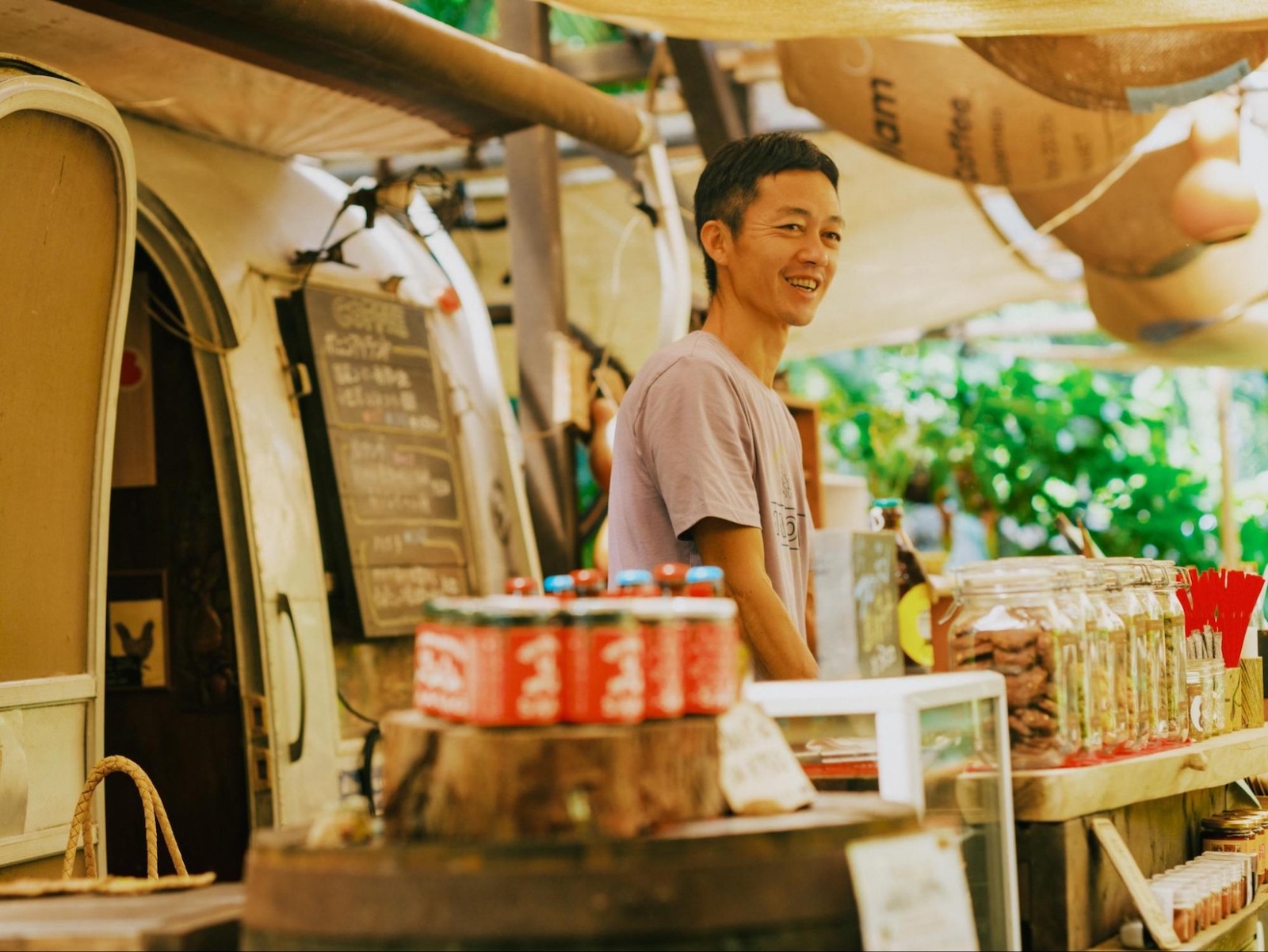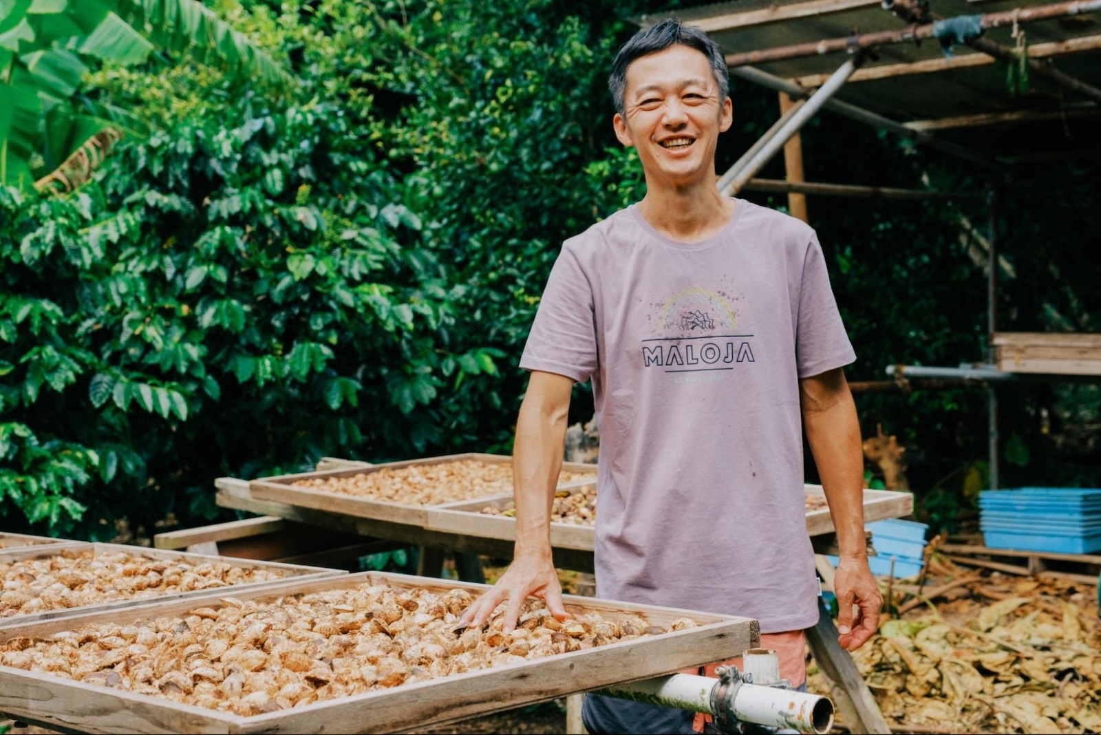 「コーヒーの栽培、収穫、焙煎、提供、ほぼ全て自分の手でやってきました。今も楽しいですが、最近カフェが軌道に乗って、安定してきたので、僕はモモタマナを使った新商品への取り組みにも夢中です!40代になって20代の時に燃え上がったコーヒーと同じくらいの熱量で取り組めるものが見つけられそうです。やる気のある若い移住希望の方がいれば、ぜひ相談してください!」と笑顔で語ってくれました。