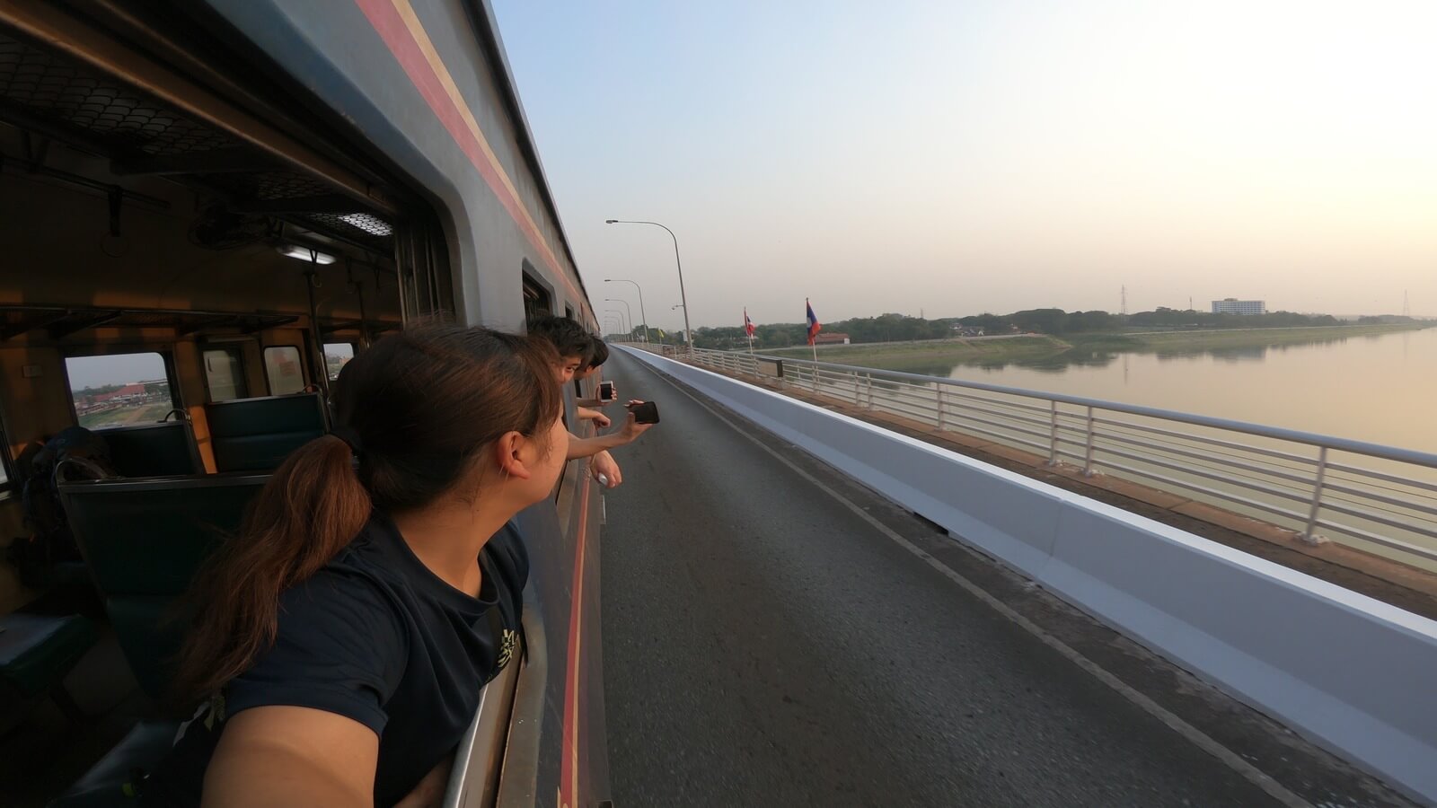 ラオスからタイへ国境を越えるときに見た、空いっぱいの夕陽。